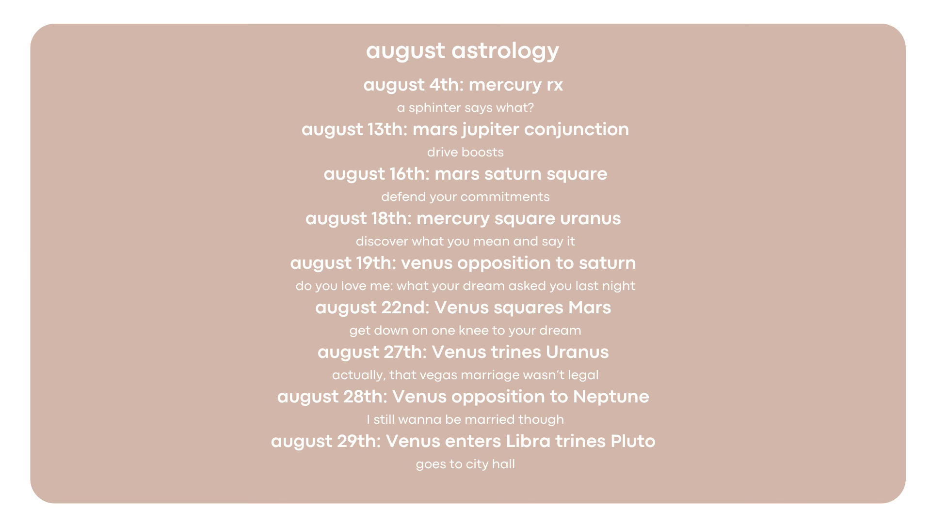 Because Venus will oppose Saturn, and that’s like saying your vows out loud. Writing them but announcing them to witnesses. It’s adding layers of accountability to prove what you say you value is what you will commit to doing for the rest of your life, through sickness, life and death—discounts.